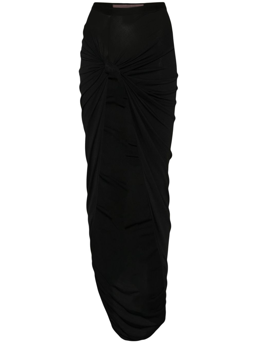 knot-detail crepe skirt Highlights - Black - Stretch-design - Crepe texture - Knot detailing - Draped detailing - Elasticated waistband - High-low hem - Unlined Made in Italy Composition Viscose 78%, Polyamide 17%, Elastane 5%