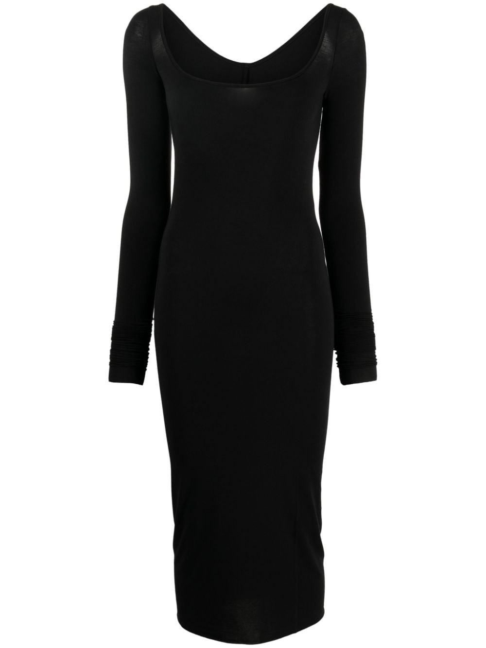 long-sleeve scoop-neck midi dress Highlights - Black - Modal blend - Scoop neck - Long sleeves - Straight hem - Below-knee length Made in Italy Composition Modal 82%, Elastane 10%, Cashmere 8% SIZE & FIT Model measurements Height 5 ft 10 in(1.77 m) Bust/Chest 33.46 in(85 cm) Hips 35.43 in(90 cm) Waist 23.62 in(60 cm) FittingInformation Designed for a close fit throughout Made from a midweight stretch fabric, this piece offers elasticity and flexibility when worn This piece fits close in all sizes – take your usual size Washing instructions Hand Wash