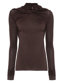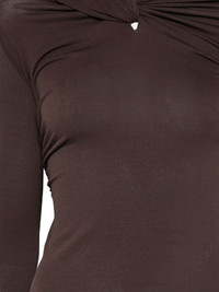 twisted long-sleeve top Highlights - Brown - Twisted detail - Long sleeves - Gathered cuffs - High neck Made in Italy Composition FSC Viscose 78%, Polyamide 17%, Elastane 5% Washing instructions Hand Wash