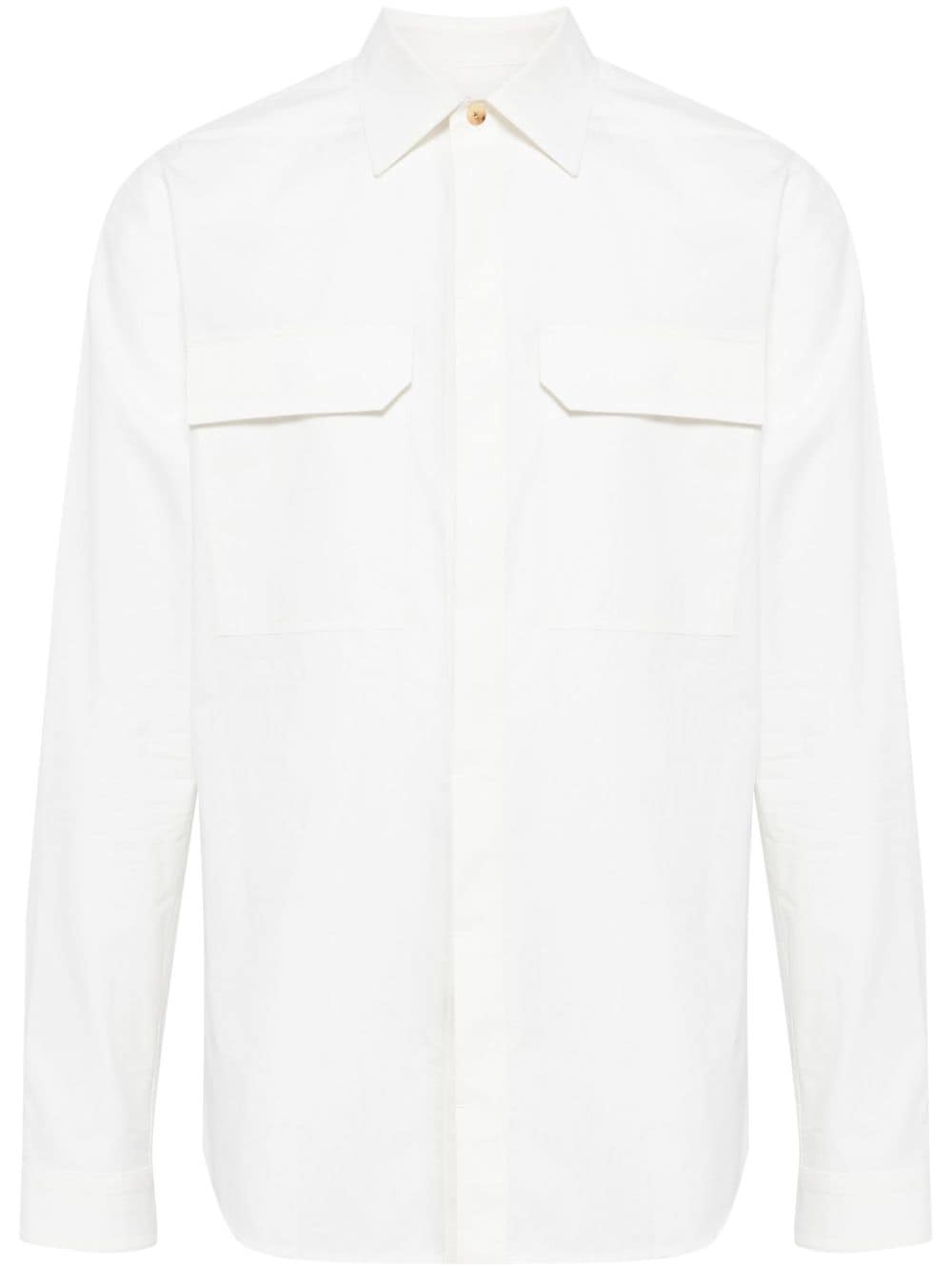 long-sleeve cotton shirt Highlights - Milk white - Cotton - Straight-point collar - Concealed front button fastening - Long sleeves - Buttoned cuffs - Two chest patch pockets - Straight hem Made in Italy Composition Cotton 100% SIZE & FIT Model measurements Height 6 ft 2 in(1.89 m) Bust/Chest 37.4 in(95 cm) Hips 36.61 in(93 cm) Waist 28.34 in(72 cm) FittingInformation Designed for a regular fit, allowing for a comfortably loose fit throughout the body Made from a midweight non-stretch fabric This piece fits true to size – take your usual size Washing instructions Hand Wash