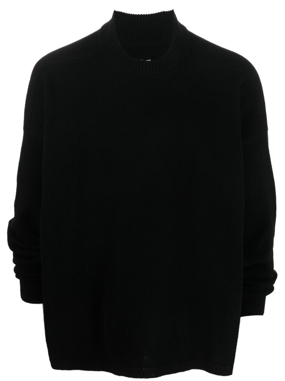 long-sleeves fine-knit sweater Highlights - Black - Wool-cashmere blend - Knitted construction - Fine knit - Round neck - Drop shoulder - Long sleeves - Ribbed cuffs and hem Made in Italy Composition Cashmere 97%, Wool 3% SIZE & FIT Model measurements Height 6 ft 1 in(1.86 m) Bust/Chest 37.79 in(96 cm) Hips 38.58 in(98 cm) Waist 33.85 in(86 cm) Washing instructions Hand Wash