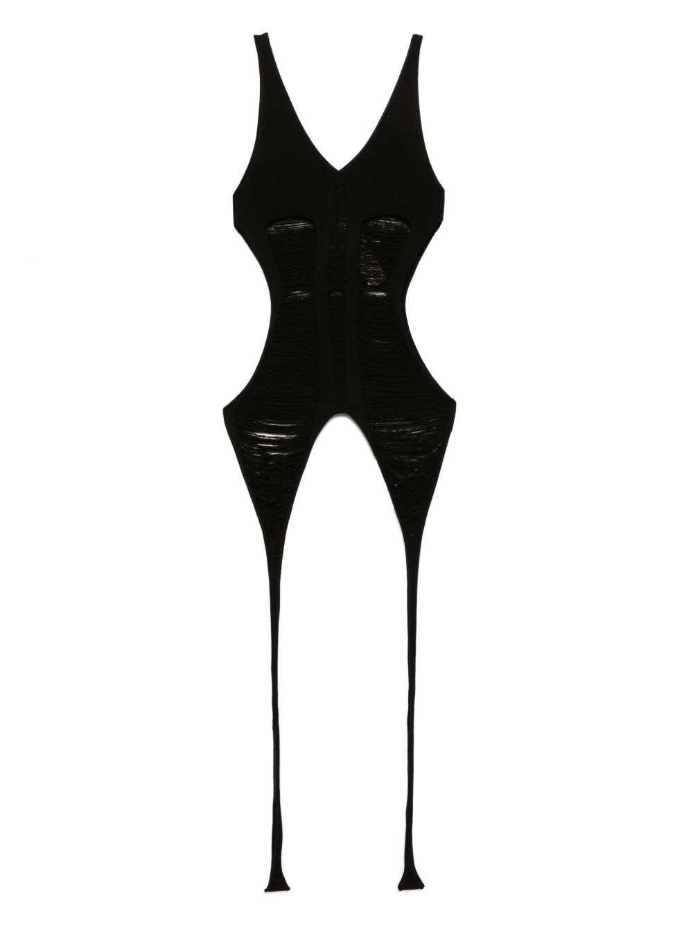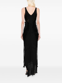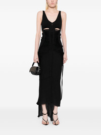 long Tanja tank top Highlights - Black - Plunging v-neck - V-back - Semi-sheer construction Made in Italy Composition Virgin Wool 100% SIZE & FIT Model measurements Height 5 ft 9 in(1.76 m) Bust/Chest 31.1 in(79 cm) Hips 35.03 in(89 cm) Waist 24.4 in(62 cm) FittingInformation Designed for a close fit throughout Made with a lightweight knit, this piece offers some stretch Washing instructions Dry Clean Only
