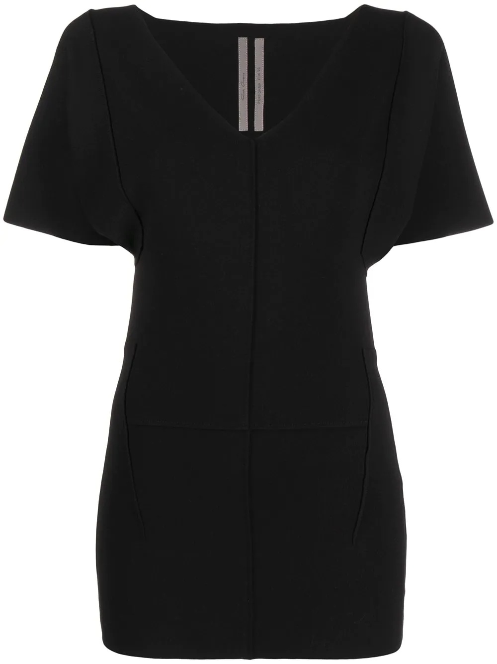 longline V-neck top black stretch design V-neck short sleeves straight hem Made in Italy Composition Polyester 100% SIZE & FIT Model measurements Height 5 ft 9 in(1.75 m) Bust/Chest 32.67 in(83 cm) Hips 36.22 in(92 cm) Waist 24.8 in(63 cm) FittingInformation This piece fits true to size. We recommend you get your regular size Cut for a slim fit Made with a mid-weight stretch fabric Washing instructions Dry Clean Only