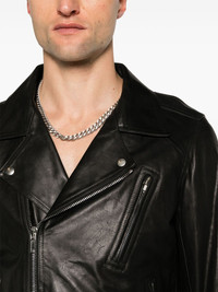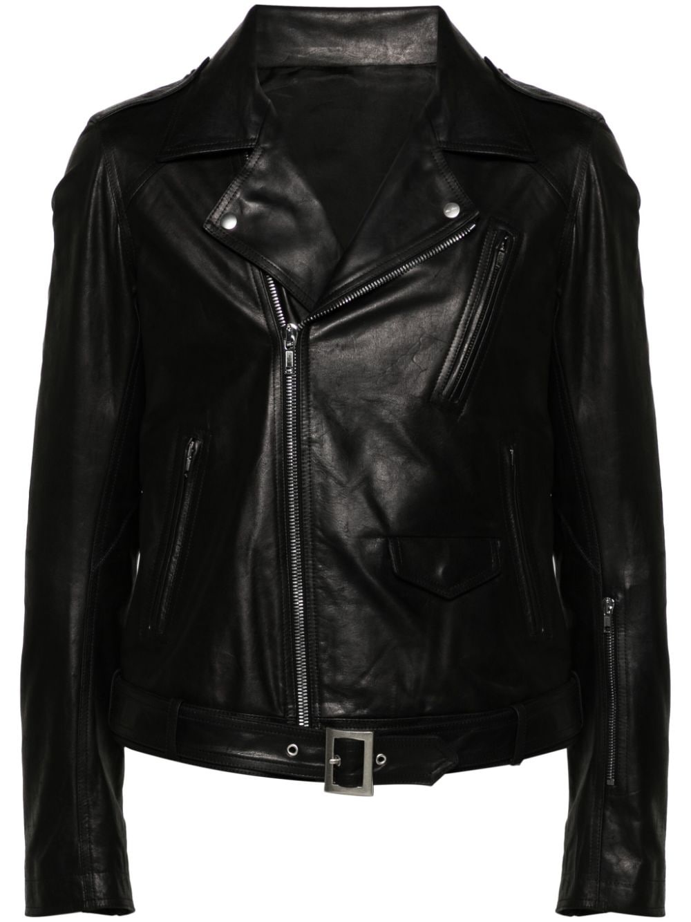 Lukes Stooges leather jacket Highlights - Black - Calf leather - Wide notch lapels - Off-centre front zip fastening - Epaulettes - Long sleeves with cuff zips - Zip-fastening chest pocket - Front flap pocket - Two side zip-fastening pockets - Belted waist - Straight hem - Full lining - Silver-tone hardware Made in Italy Composition Lining: Cotton 100%, Viscose 53%, Cupro 47% Outer: Calf Leather 100% SIZE & FIT Model measurements Height 6 ft 2 in(1.87 m) Bust/Chest 37.79 in(96 cm) Hips 37.79 in(96 cm) Waist 30.31 in(77 cm) FittingInformation Designed for a relaxed fit, this piece allows for comfort and movement when worn Firm leather offering little flexibility to maintain its durability and sturdiness This piece fits true to size – take your usual size