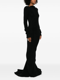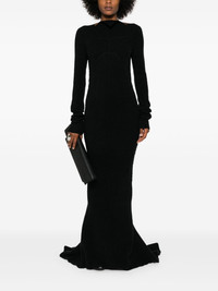 Luna gown Highlights - Black - Stretch-design - Knitted construction - Felted finish - Round neck - Oversize long sleeves - Seam detailing - Open back - Train Made in Italy Composition Alpaca Wool 48%, Polyamide 30%, Wool 20%, Elastane 2% SIZE & FIT Model measurements Height 5 ft 11 in(1.8 m) Bust/Chest 32.67 in(83 cm) Hips 35.82 in(91 cm) Waist 25.98 in(66 cm) FittingInformation Designed for a close fit throughout Particularly long in length; consider your own measurements Made with a midweight knit, this piece offers some stretch