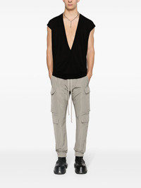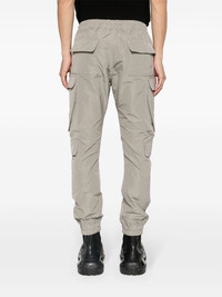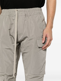 Mastodon Megacargo tapered trousers Rick Owens' Mastodon Megacargo trousers boast a dropped crotch - a recurring silhouette from the brand. Crafted from pearl grey recycled materials, this pair is completed by multiple cargo pockets for easy storage. Highlights - Light grey - Recycled polyester - Seam detailing - Mid-rise - Elasticated drawstring waistband - Concealed front button fastening - Drop crotch - Two side slit pockets - Multiple cargo pockets - Two rear flap pockets - Tapered leg - Elasticated ankles Made in Italy Composition Recycled Polyester 100%, Buffalo Horn 100% SIZE & FIT Model measurements Height 6 ft 1 in(1.86 m) Bust/Chest 36.61 in(93 cm) Hips 37 in(94 cm) Waist 28.74 in(73 cm) FittingInformation Designed with a dropped crotch, offering a loose and relaxed fit Adjust this piece’s waistband to your preference using the drawstring Made from a midweight non-stretch fabric This piece fits true to size – take your usual size Washing instructions Hand Wash
