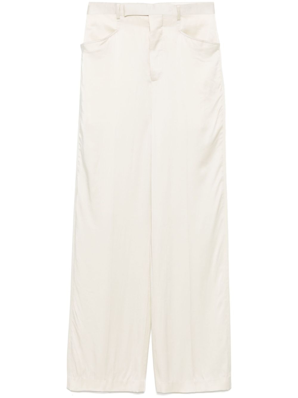 Mastodon trousers Highlights - Ecru - Concealed front button, hook and zip fastening - Belt loops - Two side slash pockets - Two rear button-fastening pockets Made in Italy Composition Outer: Buffalo Horn 100%, Acetate 61%, Viscose 39% Lining: Cupro 100% SIZE & FIT Model measurements Height 5 ft 11 in(1.8 m) Bust/Chest 32.67 in(83 cm) Hips 36.22 in(92 cm) Waist 24.4 in(62 cm) FittingInformation Designed with a wide-leg cut, these trousers allow for a close fit at the waist and offer a loose and roomy fit over the leg Made from a lightweight non-stretch fabric