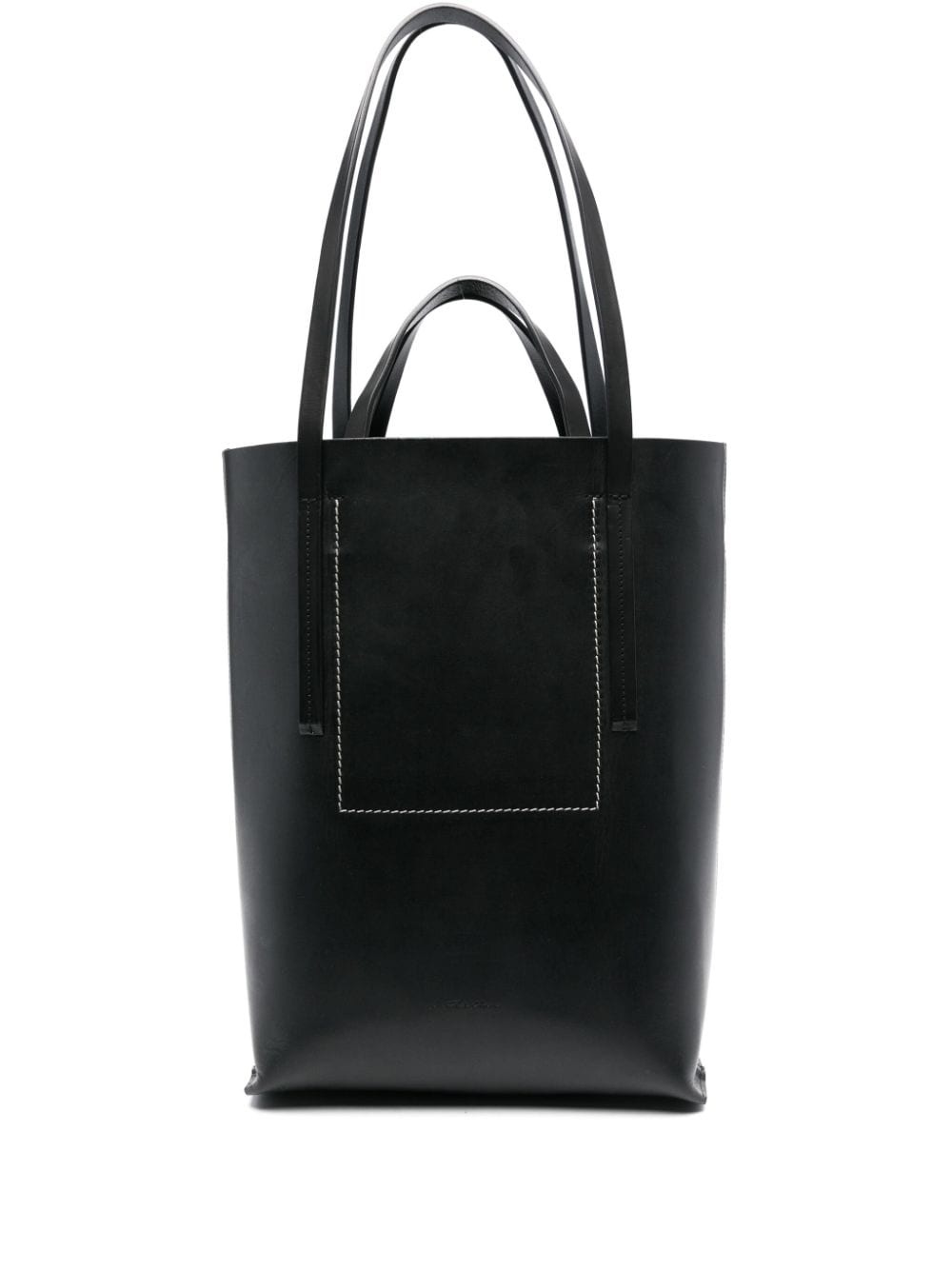 medium leather tote bag Highlights - Black - Calf leather - Smooth grain - Two flat top handles - Two flat shoulder straps - Decorative stitching - Debossed logo to the front - Main compartment - Internal patch pocket - Internal zip-fastening pocket - Debossed internal logo - Open top Made in Italy Composition Outer: Calf Leather 100% SIZE & FIT Measurement DEPTH 3.93 in(10 cm) HANDLE 4.72 in(12 cm) HEIGHT 15.74 in(40 cm) STRAP 25.98 in(66 cm)