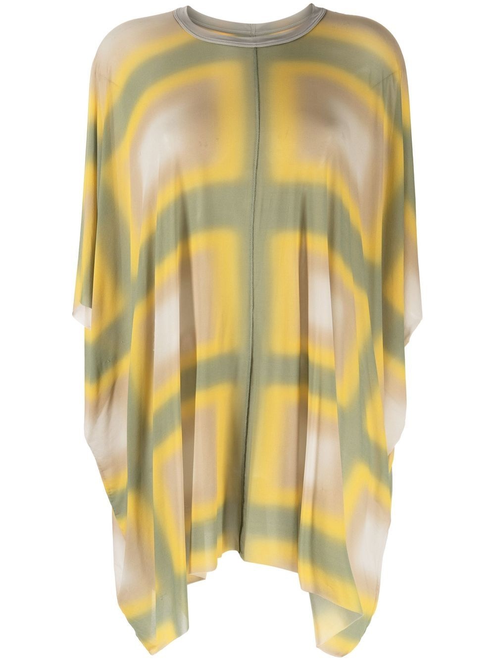 Minerva draped geometric-print top Highlights - Minerva draped geometric-print top from rick owens featuring multicolour, stretch-design, geometric print, faded effect, round neck, short draped sleeves and curved hem. Made in Italy Composition Cupro 92%, Spandex/Elastane 8% SIZE & FIT Model measurements Height 5 ft 9 in(1.74 m) Bust/Chest 32.28 in(82 cm) Hips 35.82 in(91 cm) Waist 24.01 in(61 cm) FittingInformation This piece fits true to size. We recommend you get your regular size Cut for a loose fit Made with a mid-weight stretch fabric