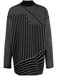 multi-stripe virgin wool jumper black/white virgin wool fine knit multi-way stripe pattern crew neck long sleeves straight hem Made in Italy Composition Virgin Wool 100% SIZE & FIT Model measurements Height 6 ft 2 in(1.87 m) Bust/Chest 36.41 in(92.5 cm) Hips 37 in(94 cm) Waist 29.52 in(75 cm) Measurement CHEST 47.24 in(120 cm) SLEEVE LENGTH 22.83 in(58 cm) LENGTH 29.92 in(76 cm) FittingInformation This piece fits true to size. We recommend you get your regular size Cut for a loose fit Made with a mid-weight fabric Washing instructions Dry Clean Only