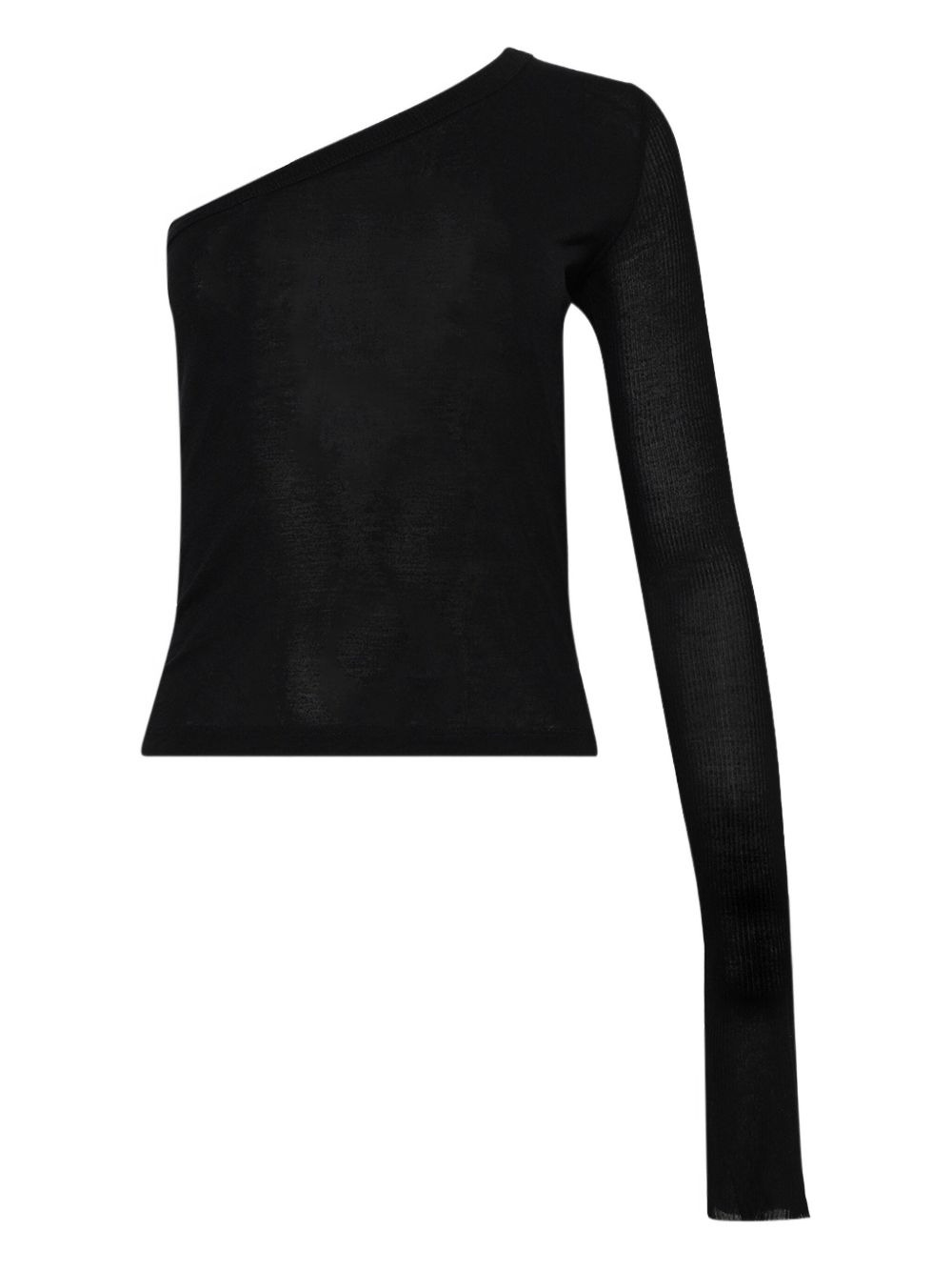one-shoulder long-sleeve top Highlights - Black - One-shoulder neckline - Long sleeve - Close-fitting - Straight hemline Made in Italy Composition Viscose 88%, Silk 12% Washing instructions Read Manufacturer Guidelines