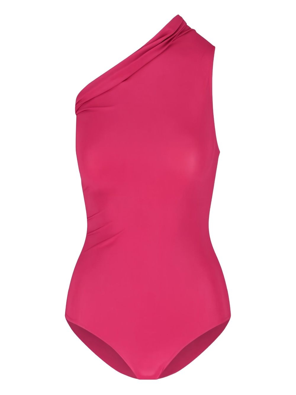one-shoulder swimsuit Highlights - Hot pink - One-shoulder - Draped detailing - Be mindful to try on swimwear over your own garments. Made in Italy Composition Polyamide 73%, Elastane 27%