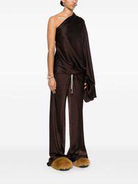 One-shoulder draped satin blouse