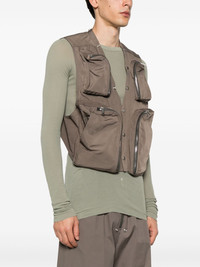 open-back cargo gilet Highlights - Taupe brown - Front press-stud fastening - Multiple zip-fastening pockets - Adjustable strap to the rear - V-neck Made in Italy Composition Lining: Cotton 100% Outer: Recycled Polyester 100% SIZE & FIT Model measurements Height 6 ft 2 in(1.87 m) Bust/Chest 36.41 in(92.5 cm) Hips 35.43 in(90 cm) Waist 29.52 in(75 cm) FittingInformation Designed for a relaxed fit, this piece allows for comfort and movement when worn The adjustable tabs allow for fitted preferences Made from a midweight non-stretch fabric