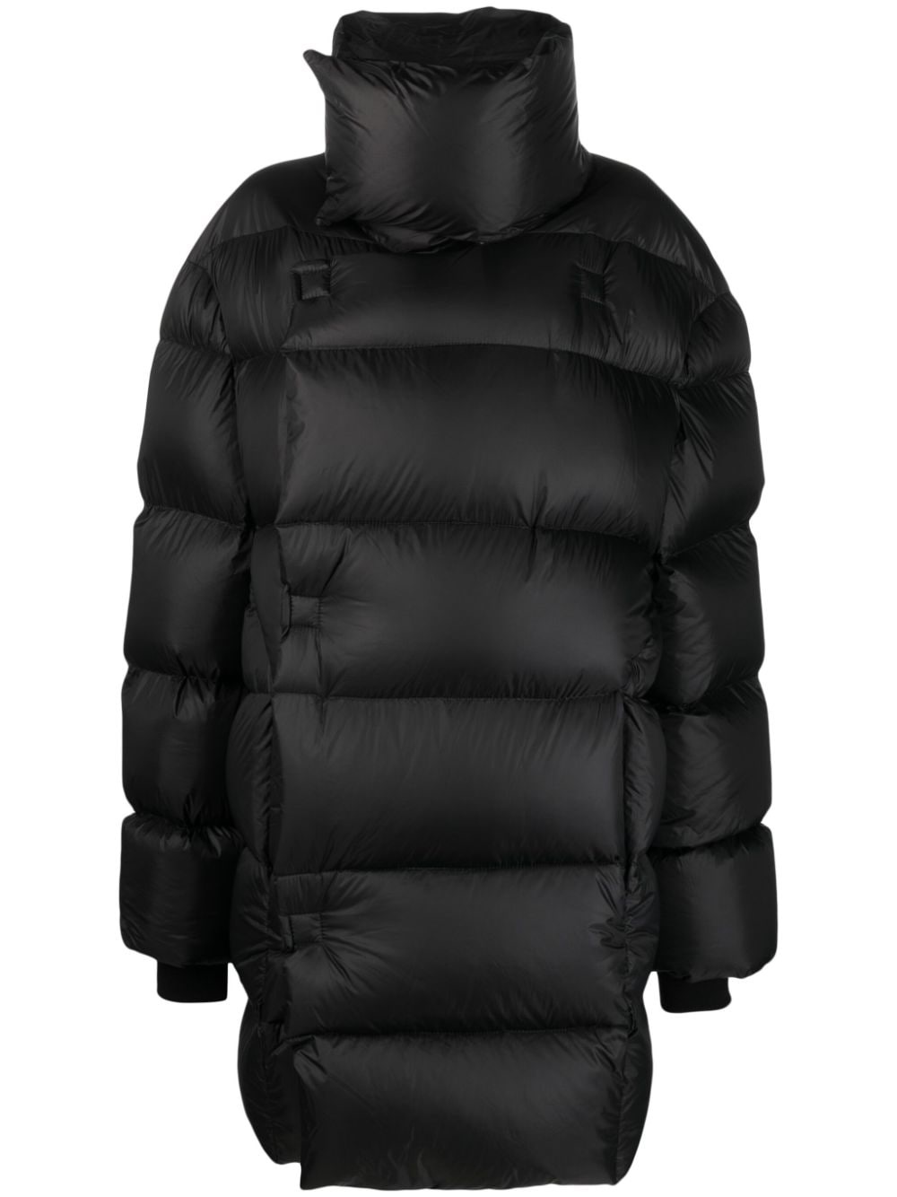 padded high-neck coat Highlights - Black - Feather down - Padded design - Quilted - Tonal stitching - High neck - Off-centre front fastening - Long sleeves - Elasticated cuffs - Detachable waist belt - Two side inset pockets - Straight hem - Mid-length Made in Italy Composition Outer: Polyamide 100%, Virgin Wool 100% Lining: Feather Down 100%, Cotton 100% SIZE & FIT Model measurements Height 5 ft 10 in(1.78 m) Bust/Chest 31.49 in(80 cm) Hips 37 in(94 cm) Waist 23.62 in(60 cm) FittingInformation Designed for an oversized fit, offering additional room throughout Made from a padded non-stretch fabric, giving it no natural elasticity This piece fits true to size – take your usual size Washing instructions Dry Clean Only