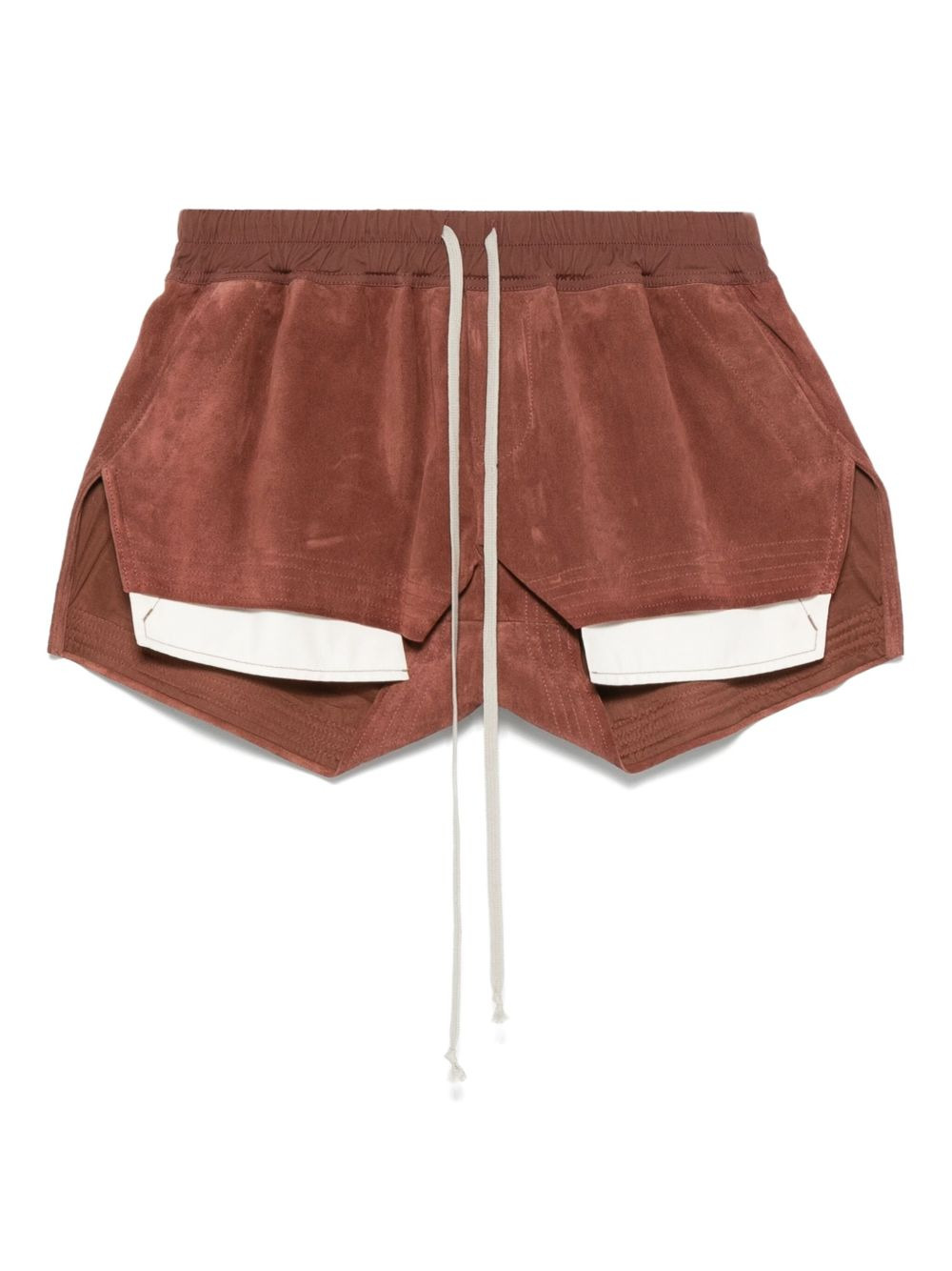 panelled drawstring shorts Highlights - Brown - Drawstring fastening - Side panels - Flat front Made in Italy Composition Suede 100% SIZE & FIT Model measurements Height 5 ft 10 in(1.77 m) Bust/Chest 32.28 in(82 cm) Hips 35.03 in(89 cm) Waist 25.19 in(64 cm) Washing instructions Read Manufacturer Guidelines