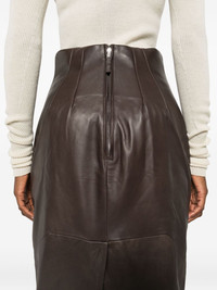 panelled leather midi skirt