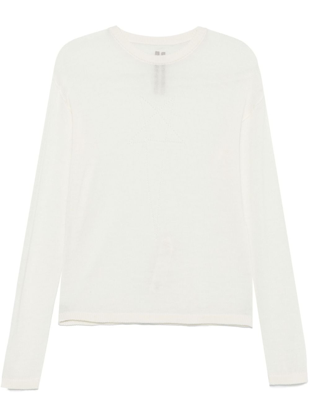 Penta sweater Highlights - Milk white - Virgin wool - Fine knit - Semi-sheer construction - Ribbed crew neck - Drop shoulder - Long sleeves - Jacquard pentagram motif - Ribbed cuffs and hem Made in Italy Composition Virgin Wool 100% SIZE & FIT Model measurements Height 5 ft 10 in(1.78 m) Bust/Chest 33.46 in(85 cm) Hips 36.22 in(92 cm) Waist 23.22 in(59 cm) FittingInformation Designed for a relaxed fit, this piece allows for comfort and movement when worn Made with a lightweight knit, this piece offers some stretch This piece fits true to size – take your usual size