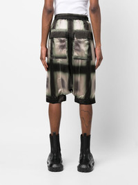 plaid-print knee-length shorts black/green plaid check print mid-rise elasticated drawstring waistband drop crotch two side slit pockets two rear flap pockets Made in Italy Composition Cupro 100% SIZE & FIT Model measurements Height 6 ft 1 in(1.85 m) Bust/Chest 31.88 in(81 cm) Hips 33.07 in(84 cm) Waist 26.77 in(68 cm) FittingInformation This piece fits true to size. We recommend you get your regular size Designed for a slim fit at the waist and loose over the leg Made with a mid-weight non-stretch fabric Washing instructions Dry Clean Only