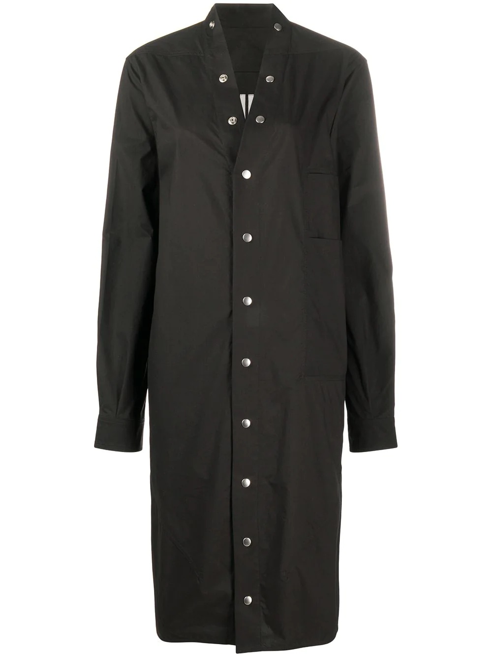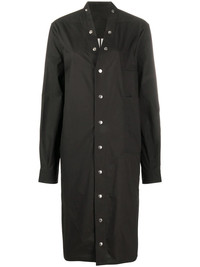 press-stud shirt dress Black cotton press-stud shirt dress from Rick Owens featuring side slits, a straight hem, a press stud fastening, long sleeves, press stud cuffs and a mid-length. Made in Italy Composition Cotton 100% SIZE & FIT Model measurements Height 5 ft 11 in(1.8 m) Bust/Chest 33.07 in(84 cm) Hips 37.4 in(95 cm) Waist 25.19 in(64 cm) FittingInformation This piece fits true to size. We recommend you get your regular size Cut for a loose fit Made with a mid-weight non-stretch fabric Washing instructions Hand Wash