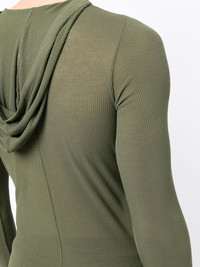 rib-knit hooded T-shirt green fine ribbed classic hood long sleeves straight hem long length Made in Italy Composition Body: Viscose 88%, Silk 12% SIZE & FIT Model measurements Height 6 ft 0 in(1.83 m) Bust/Chest 37.79 in(96 cm) Hips 37 in(94 cm) Waist 30.31 in(77 cm) FittingInformation This piece fits true to size. We recommend you get your regular size Cut for a close fit Made with a lightweight fabric Washing instructions Hand Wash