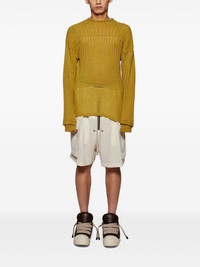 ribbed-knit jumper Highlights - Mustard yellow - Round neck - Long sleeves - Flared hem Made in Italy Composition Virgin Wool 64%, Polyamide 36% SIZE & FIT FittingInformation Designed for a relaxed fit, this piece allows for comfort and movement when worn Made with a lightweight knit, this piece offers some stretch Washing instructions Dry Clean Only