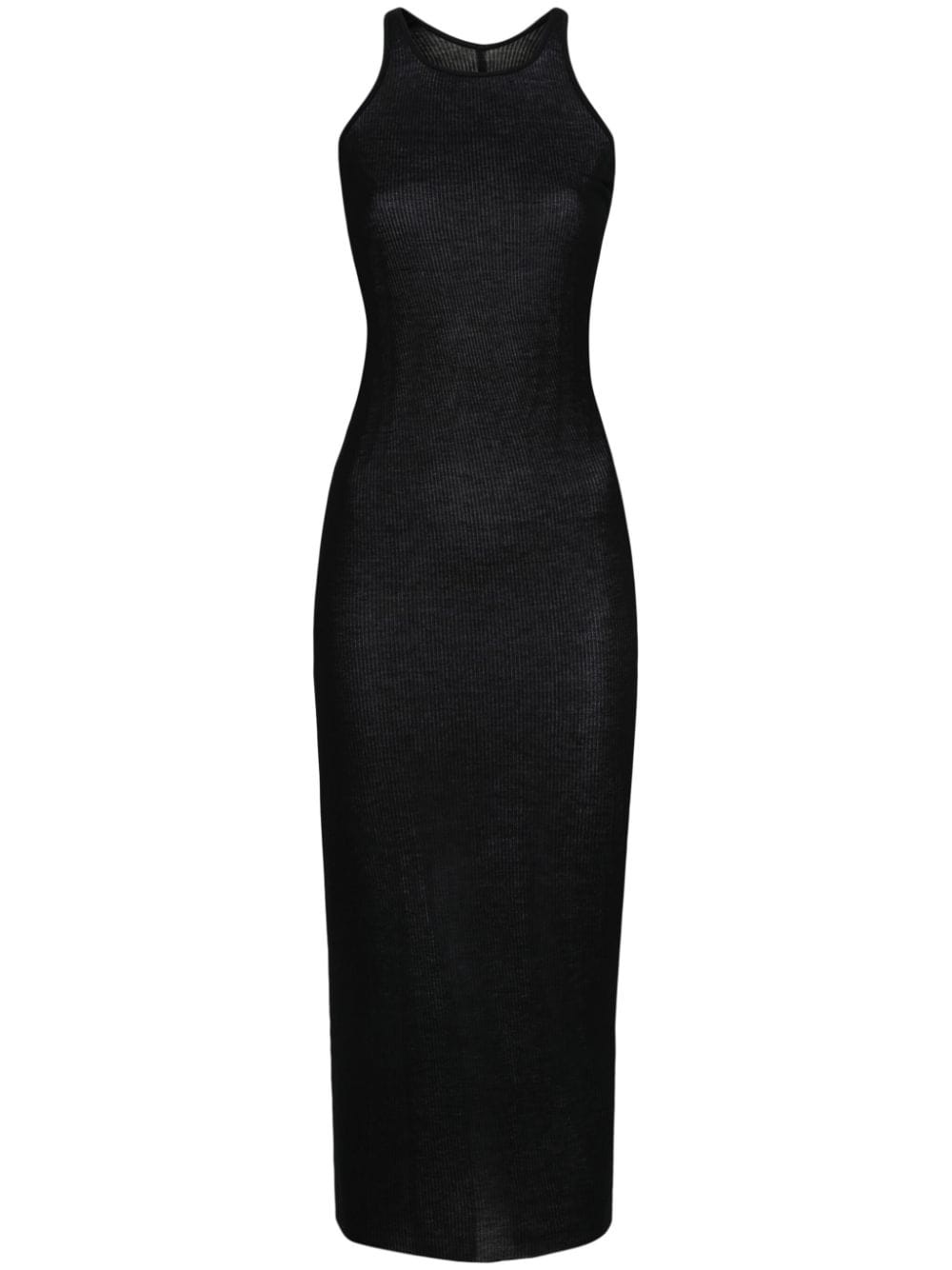 ribbed sleeveless dress Highlights - Black - Fine ribbed - Semi-sheer construction - Seam detailing - Round neck - Sleeveless - Racerback - Straight hem Made in Italy Composition Viscose 88%, Silk 12% SIZE & FIT Model measurements Height 5 ft 10 in(1.77 m) Bust/Chest 32.28 in(82 cm) Hips 35.03 in(89 cm) Waist 25.19 in(64 cm) FittingInformation Designed for a close fit throughout Made from a lightweight non-stretch fabric, this piece offers minimal elasticity when worn This piece fits true to size – take your usual size Washing instructions Hand Wash