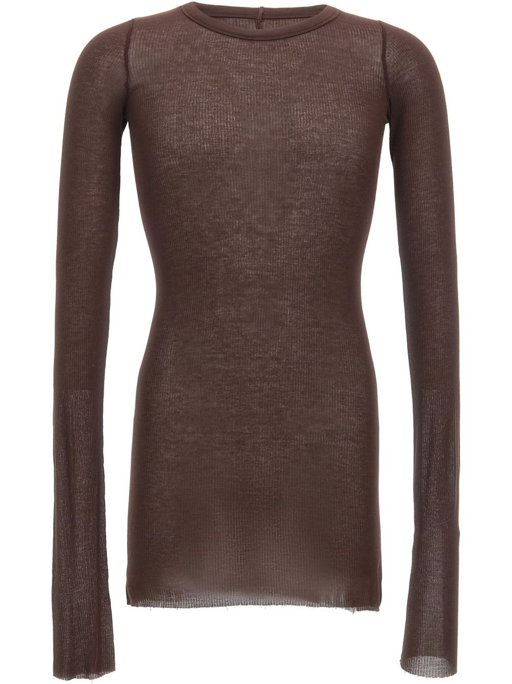 ribbed T-shirt Highlights - Cedar brown - Crew neck - Long sleeves - Raw-cut edge Made in Italy Composition Viscose 88%, Silk 12%