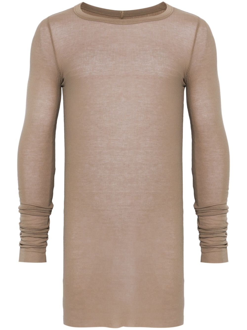 ribbed T-shirt Highlights - Light brown - Raw-cut edge - Long sleeves Made in Italy Composition FSC Viscose 88%, Silk 12% SIZE & FIT Model measurements Height 6 ft 2 in(1.87 m) Bust/Chest 37.79 in(96 cm) Hips 37.79 in(96 cm) Waist 30.31 in(77 cm) FittingInformation Designed for a slim fit, offering a comfortable fit that sits just away from the body Made with a midweight knit, this piece offers some stretch