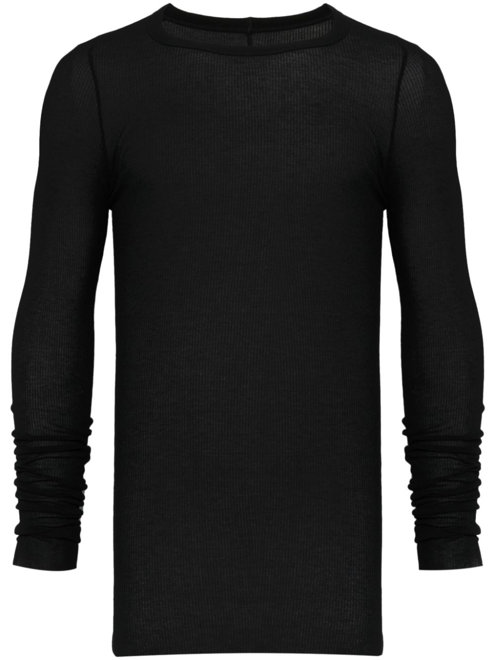 ribbed T-shirt Highlights - Black - Raw-cut edge - Long sleeves Made in Italy Composition FSC Viscose 88%, Silk 12% SIZE & FIT Model measurements Height 6 ft 2 in(1.87 m) Bust/Chest 37.79 in(96 cm) Hips 37.79 in(96 cm) Waist 30.31 in(77 cm) FittingInformation Designed for a slim fit, offering a comfortable fit that sits just away from the body Made with a midweight knit, this piece offers some stretch