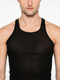 ribbed tank top Highlights - Black - Scoop neck - Sleeveless - Racerback Made in Italy Composition FSC Viscose 88%, Silk 12% SIZE & FIT Model measurements Height 6 ft 2 in(1.87 m) Bust/Chest 37.79 in(96 cm) Hips 37.79 in(96 cm) Waist 30.31 in(77 cm) FittingInformation Designed for a close fit throughout Made from a lightweight non-stretch fabric, this piece offers minimal elasticity when worn