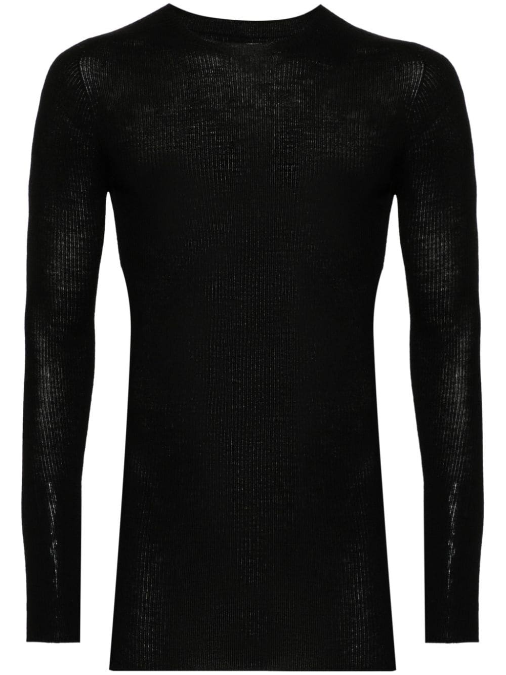 ribbed virgin wool jumper Highlights - Black - Virgin wool - Ribbed knit - Seam detailing - Round neck - Long sleeves - Straight hem Made in Italy Composition Virgin Wool 100% SIZE & FIT Model measurements Height 6 ft 2 in(1.87 m) Bust/Chest 38.18 in(97 cm) Hips 36.61 in(93 cm) Waist 29.13 in(74 cm) FittingInformation Designed for a close fit throughout Made with a lightweight knit, this piece offers some stretch This piece fits true to size – take your usual size Washing instructions Hand Wash