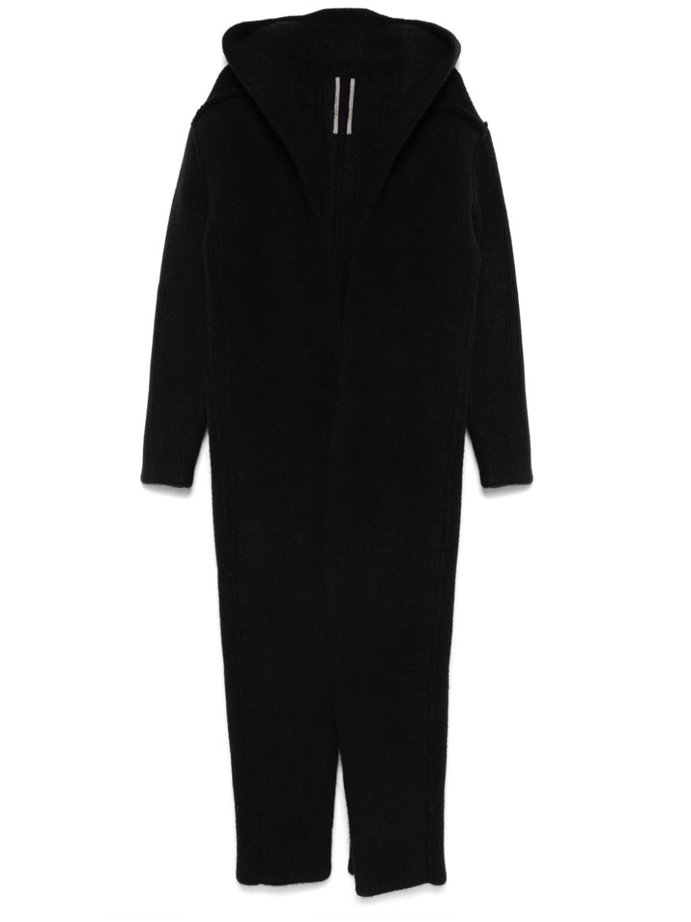 Robe hooded cardi-coat Highlights - Black - Ribbed knit - Open front - Slouchy hood - Exposed-seam detailing - Long sleeves - Central rear vent - Floor-length Made in Italy Composition Alpaca Wool 48%, Polyamide 30%, Wool 20%, Elastane 2% SIZE & FIT Model measurements Height 5 ft 11 in(1.8 m) Bust/Chest 32.67 in(83 cm) Hips 35.03 in(89 cm) Waist 25.19 in(64 cm) FittingInformation Designed to be unstructured, offering a loose fit throughout Made with a heavyweight knit, this piece offers some stretch