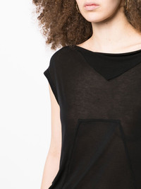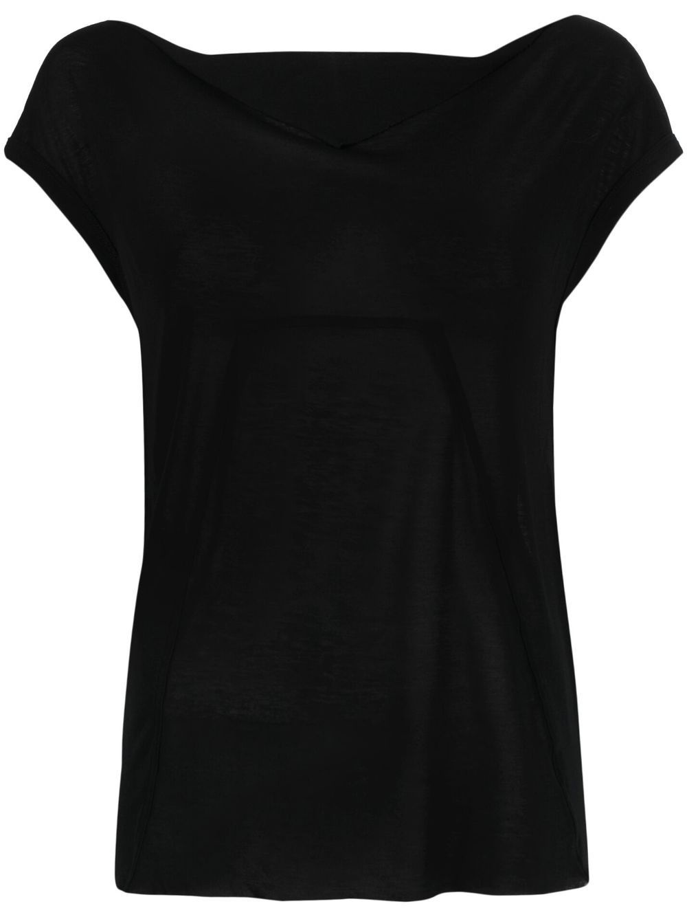 round neck short-sleeved T-shirt black semi-sheer construction crew neck short sleeves straight hem Made in Italy Composition Viscose 88%, Silk 12% SIZE & FIT Model measurements Height 5 ft 10 in(1.78 m) Bust/Chest 33.46 in(85 cm) Hips 35.43 in(90 cm) Waist 24.4 in(62 cm) FittingInformation This piece fits true to size. We recommend you get your regular size Cut for a loose fit Made with a lightweight fabric