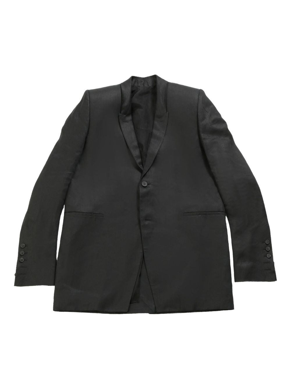 satin-finish blazer Highlights - Black - Front button fastening - Two front jetted pockets - Shawl lapels - Long sleeves Made in Italy Composition Linen/Flax 84%, Polyamide 16%