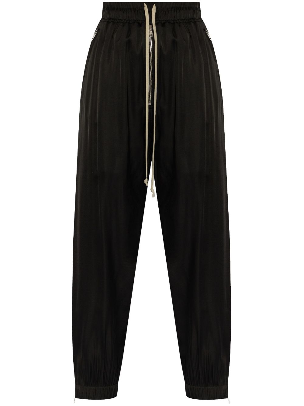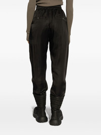 satin trousers Highlights - Black - Front zip fastening - Elasticated drawstring waistband - Two side zip-fastening pockets - Two rear welt pockets Made in Italy Composition Acetate 61%, Viscose 39% SIZE & FIT FittingInformation Designed with a dropped crotch, these trousers allow for a close fit at the waist with a loose and relaxed fit through the leg The elasticated hem at the ankle allows for movement and a comfortable fit Made from a lightweight non-stretch fabric Washing instructions Read Manufacturer Guidelines