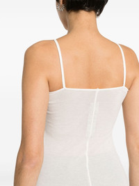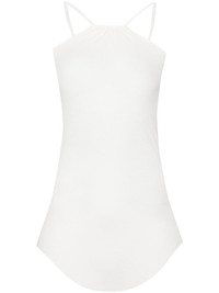 Scorpio ribbed-knit tank top Highlights - Milk white - Fine ribbed - Round neck - Sleeveless - Spaghetti straps - Signature seam running down at the rear - Raw-cut hem Made in Italy Composition FSC Viscose 88%, Silk 12% SIZE & FIT Model measurements Height 5 ft 11 in(1.8 m) Bust/Chest 33.07 in(84 cm) Hips 37 in(94 cm) Waist 25.59 in(65 cm) Measurement BUST 25.19 in(64 cm) LENGTH 22.04 in(56 cm) WAIST 27.55 in(70 cm) FittingInformation Designed for a close fit throughout Made from a lightweight non-stretch fabric, this piece offers minimal elasticity when worn This piece fits true to size – take your usual size Washing instructions Hand Wash