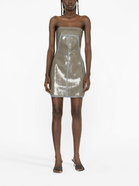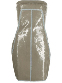 sequin-embellished bandeau dress Highlights - Beige - Light blue - Sequin embellishment - Bandeau style - Rear zip fastening - Thigh-length Made in Italy Composition Polyester 100%, Cotton 91%, Polyamide 78%, Elastane 22%, Elastomultiester 6%, Rubber 3% SIZE & FIT Model measurements Height 5 ft 10 in(1.79 m) Bust/Chest 31.1 in(79 cm) Hips 35.03 in(89 cm) Waist 24.01 in(61 cm) FittingInformation Designed for a close fit throughout The dart stitching adds structure and a closer fit in the torso of this piece Made from a midweight fabric This piece fits small – take one size up. If you have a fuller chest you may wish to take a further size up Washing instructions Hand Wash