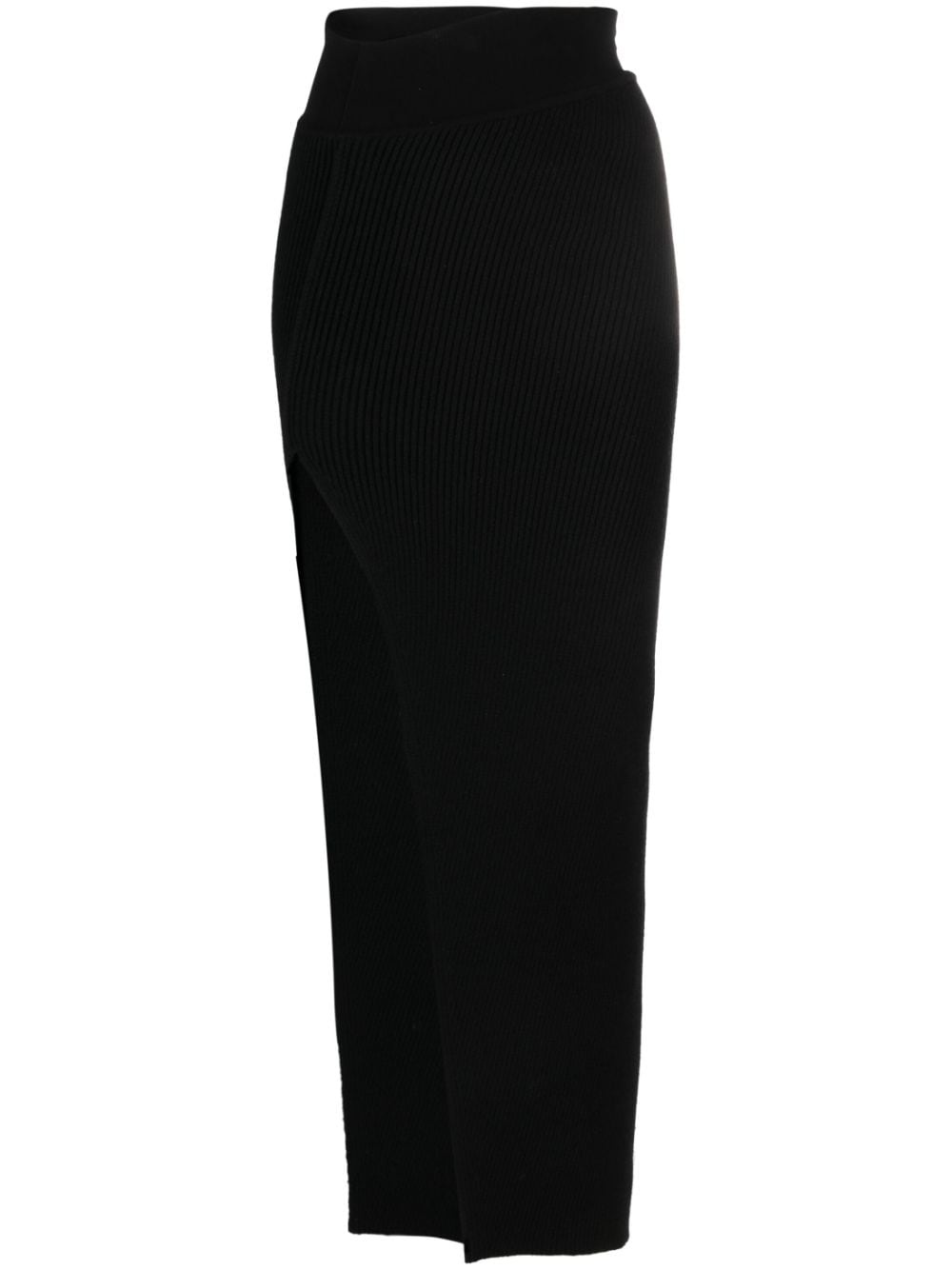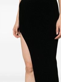 side-slit ribbed-knit skirt Highlights - Black - Recycled cashmere - Knitted construction - Ribbed knit - Side slit - Elasticated waistband - Straight hem - Long length Made in Italy Composition Recycled Cashmere 97%, Wool 2%, Spandex/Elastane 1% SIZE & FIT Model measurements Height 5 ft 10 in(1.78 m) Bust/Chest 30.7 in(78 cm) Hips 36.22 in(92 cm) Waist 25.59 in(65 cm) FittingInformation This maxi-length skirt is intended to be worn high on the waist The elasticated waist allows for a comfortable fit Made with a heavyweight knit, this piece offers some stretch This piece fits true to size – take your usual size Washing instructions Hand Wash