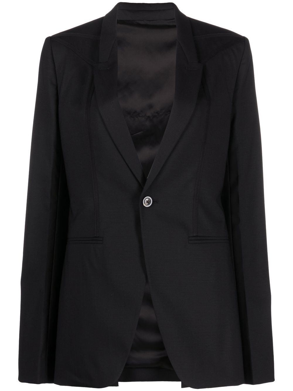 single-breasted blazer Rick Owens embraces sharp lines and a tailored design with this blazer. In a tonal black hue, this creates a sense of timeless minimalism for the piece. Made in Italy Composition Outer: Virgin Wool 96%, Elastane 4% Lining: Cotton 100%, Viscose 53%, Cupro 47% SIZE & FIT Model measurements Height 5 ft 11 in(1.8 m) Bust/Chest 32.67 in(83 cm) Hips 36.22 in(92 cm) Waist 24.4 in(62 cm) FittingInformation This piece fits true to size. We recommend you get your regular size Cut for a slim fit Made with a mid-weight fabric Washing instructions Dry Clean Only