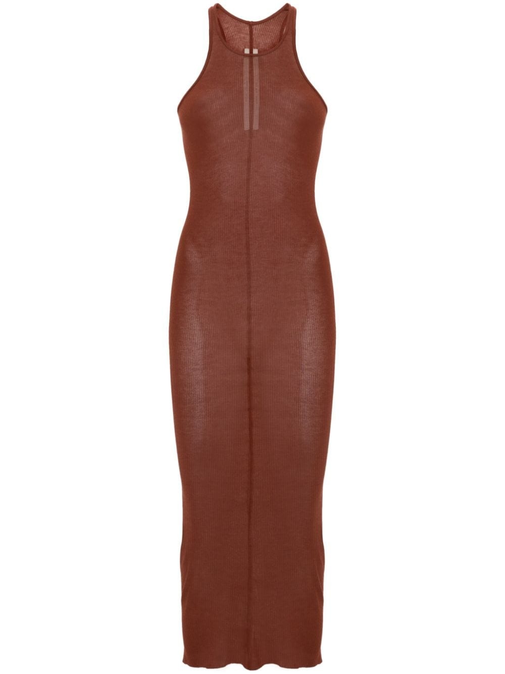 sleeveless ribbed dress Highlights - Cinnamon brown - Fine ribbed - Semi-sheer construction - Round neck - Sleeveless - Racerback - Straight hem Made in Italy Composition FSC Viscose 88%, Silk 12% SIZE & FIT Model measurements Height 5 ft 10 in(1.78 m) Bust/Chest 33.07 in(84 cm) Hips 35.82 in(91 cm) Waist 25.98 in(66 cm) FittingInformation Designed for a close fit throughout Made from a lightweight non-stretch fabric, this piece offers minimal elasticity when worn This piece fits true to size – take your usual size Washing instructions Hand Wash