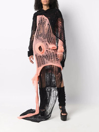 Spider knitted poncho black wool-mohair blend open knit distressed effect side slit asymmetric hem mid-length Made in Italy Composition Polyamide 50%, Mohair 46%, Wool 4% SIZE & FIT Model measurements Height 5 ft 10 in(1.78 m) Bust/Chest 33.07 in(84 cm) Hips 36.61 in(93 cm) Waist 24.8 in(63 cm) FittingInformation This piece fits true to size. We recommend you get your regular size Cut for a loose fit Made with a mid-weight fabric Washing instructions Machine Wash