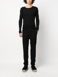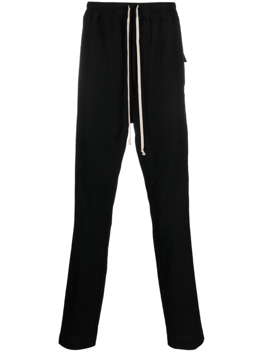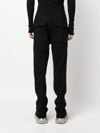straight-leg wool track pants Highlights - Jet black - Virgin wool - Straight leg - Elasticated drawstring waistband - Two side slit pockets - Two rear flap pockets Made in Italy Composition Virgin Wool 100% SIZE & FIT Model measurements Height 6 ft 2 in(1.87 m) Bust/Chest 36.61 in(93 cm) Hips 35.03 in(89 cm) Waist 27.95 in(71 cm) FittingInformation Designed for a tapered leg, offering a loose unrestricted fit over the leg with a closer fit towards the ankle Made from a midweight non-stretch fabric This piece fits true to size – take your usual size Washing instructions Dry Clean Only