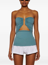 strapless top Highlights - Blue - Strapless neck - Cut-out - Straight hem Imported Composition Nylon 91%, Elastane 9% Washing instructions Read Manufacturer Guidelines
