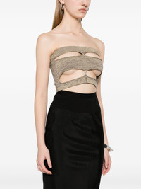 Tanja top Highlights - Gold-tone - Bandeau style - Strapless - Cropped - Cut-out detailing Made in Italy Composition Virgin Wool 52%, Viscose 37%, Polyester 11% SIZE & FIT Model measurements Height 5 ft 9 in(1.75 m) Bust/Chest 31.88 in(81 cm) Hips 34.64 in(88 cm) Waist 24.01 in(61 cm) FittingInformation Designed for a close fit throughout Cropped in length Made with a midweight knit, this piece offers some stretch