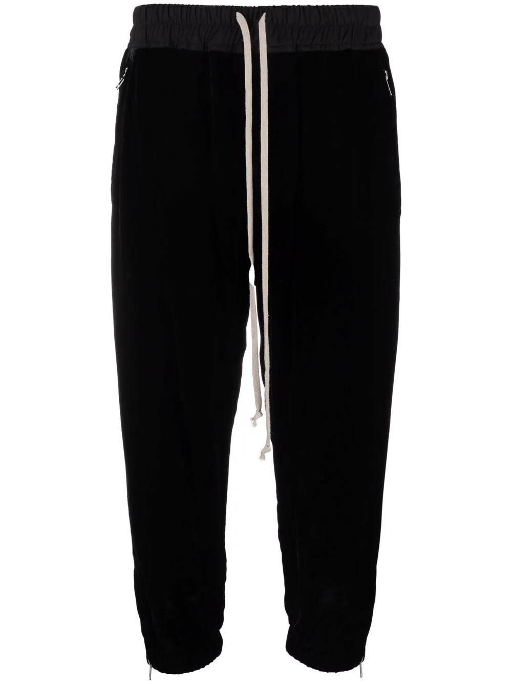 three-quarter length trousers black cotton drawstring fastening waist two side slit pockets three-quarter length Made in Italy Composition Cotton 100%, Viscose 82%, Silk 18% SIZE & FIT Model measurements Height 5 ft 9 in(1.74 m) Bust/Chest 32.28 in(82 cm) Hips 35.82 in(91 cm) Waist 24.01 in(61 cm) FittingInformation This piece fits true to size. We recommend you get your regular size Designed to be fitted at the waist and hips, loose over the leg Made with a mid-weight non-stretch fabric Washing instructions Dry Clean Only