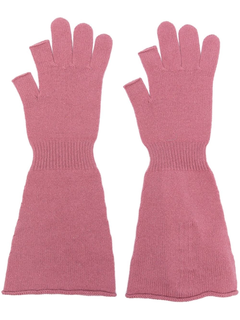 Thulian gloves Highlights - Rose pink - Organic cashmere-organic wool blend - Knitted construction - Elbow length - Ribbed cuffs - Thumb and index slots - Full-finger design Made in Italy Composition Organic Cashmere 97%, Organic Wool 3%