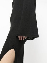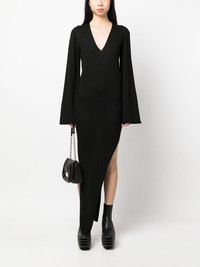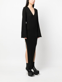 Toga V-neck maxi dress A play on proportions, Rick Owens' dress combines a plunging V-neck silhouette with long wide sleeves. Along the same lines, two thigh-high side slits contrast with the piece's maxi length. Made in Italy Composition Virgin Wool 100% SIZE & FIT Model measurements Height 5 ft 9 in(1.76 m) Bust/Chest 33.07 in(84 cm) Hips 38.58 in(98 cm) Waist 24.8 in(63 cm) Measurement Shoulder Width 14.17 in(36 cm) LENGTH 56.69 in(144 cm) WAIST 33.07 in(84 cm) BUST 36.22 in(92 cm) FittingInformation Designed for a slim fit that sits just away from the body offering a close yet comfortable fit Made with a lightweight knit, this piece offers some stretch This piece fits true to size – take your usual size Washing instructions Hand Wash