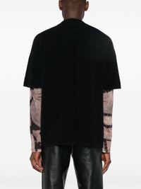 Tommy T sweater Highlights - Black - Knitted construction - Crew neck - Short sleeves - Straight hem Made in Italy Composition Alpaca Wool 48%, Polyamide 30%, Wool 20%, Elastane 2% SIZE & FIT Model measurements Height 6 ft 2 in(1.88 m) Bust/Chest 36.61 in(93 cm) Hips 35.82 in(91 cm) Waist 27.95 in(71 cm) FittingInformation Designed to be unstructured, offering a loose fit throughout Made with a midweight knit, this piece offers some stretch This piece fits true to size – take your usual size