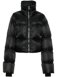 Turtle padded jacket Highlights - Black - Padded design - Stand-up collar - Long sleeves with ribbed cuffs - Two press-stud fastening side pockets - Rear strap detailing - Straight hem - Front zip fastening Made in Italy Composition Lining: Cotton 100%, Goose Down 100% Outer: Polyamide 100%, Virgin Wool 100% SIZE & FIT Model measurements Height 5 ft 11 in(1.8 m) Bust/Chest 32.67 in(83 cm) Hips 36.22 in(92 cm) Waist 24.4 in(62 cm) FittingInformation Designed to be unstructured, offering a loose fit throughout Made from a padded non-stretch fabric, giving it no natural elasticity This piece fits true to size – take your usual size Washing instructions Dry Clean Only